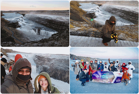 Air terjun Gullfoss yang terletak di Golden Circle Iceland adalah air terjun yang membeku pada musim sejuk merupakan air terjun yang paling terkenal di Iceland. Pengalaman melihat sendiri air terjun Gullfoss yang separa membeku kerana belum musim dingin walaupun suhu sekitar pada waktu itu ialah -7ºC adalah pengalaman hebat yang tidak dapat dilupakan.Gullfoss atau Golden Waterfalls iaitu air terjun emas sangat indah terutama apabila ia membeku kerana warna seperti keemasan merupakan satu keajaiban dunia. KLIK video youtube TEMPAT PALING MENAKJUBKAN DI GOLDEN CIRCLE DENGAN LAGU JENNIE BLACKPINK untuk melihat video pemandangan menakjubkan fenomena alam awan di tasik, geysir dan air terjun gulfoss di Iceland.