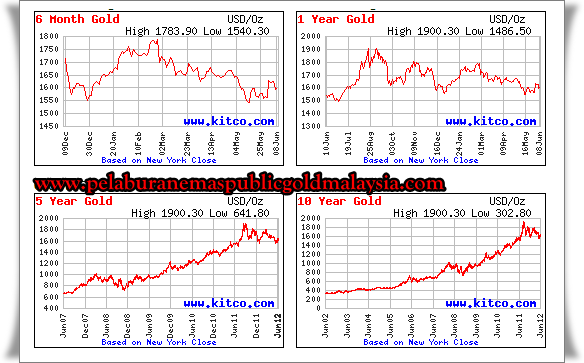 Sebenarnya kita tidak dapat meramal harga emas atau matawang kerana ia dipngaruhi banyak factor. Jika ada orang yang dapat meramal masa depan,orang itu mesti dah kaya raya.Namun begitu mengikut kawan saya yang telah berpengalaman bermain FOREX atau tukaran matawang asing, satu petunjuk untuk meramal adalah berdasarkan graf sejarah,kerana katanya biasanya sejarah akan berulang ataupun hampir sama.Namun begitu bagi saya pelabur emas fizikal,bila harga rendah atau ada wang saya akan beli emas kerana menyimpan emas takkan rugi…JIka anda juga berminat untuk menyimpan emas,belilah sekarang semasa harga emas rendah..hanya perlu SMS 019-9185593 kepada saya nama penuh,emel,nombor h/p,alamat kepada saya untuk saya daftarkan pelanggan public gold dengan hanya membeli 1 dinar dan mengambil stok emas anda dicawangan public gold berdekatan anda. Apabila saya telah daftarkan sebagai pelanggan public gold,pihak public gold akan memberikan nombor kod pg untuk anda membeli atau lock harga sendiri di website public gold.