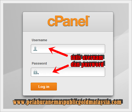 1. Anda login di cpanel hosting Anda, dengan alamat http://www.namadomainanda.com/cpanel. Kemudian masukkan username dan password yang diberikan oleh hosting Anda. Penyedia hosting seperti exabytes akan memberikan username dan password sementara melalui emel.